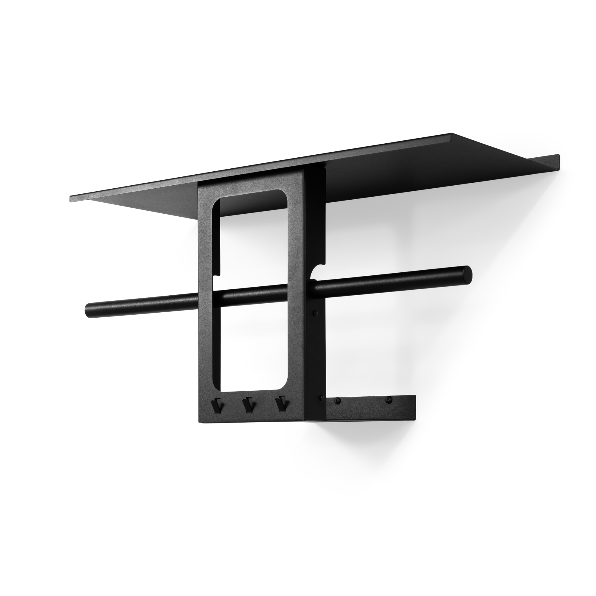 Koons är en liten serie med flera storlekar och modeller av hatthyllor, både i svart och vit metall.