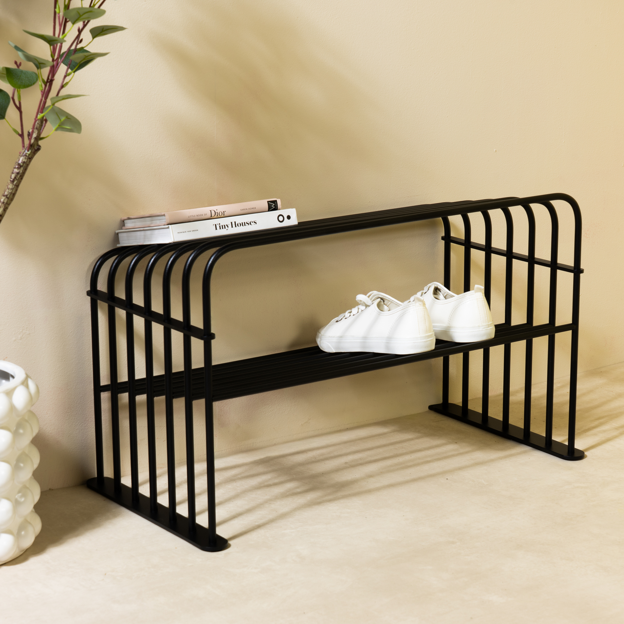 Få kontroll över dina skor i hallen med denna skohylla i svart metall.
