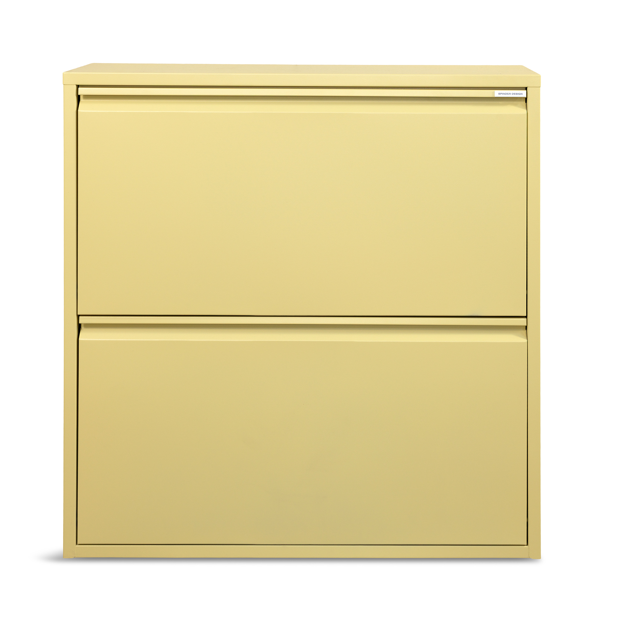 Zapato är ett elegant skoskåp i ljusgul metall som löser problemet med skor som ligger runt i korridoren.
