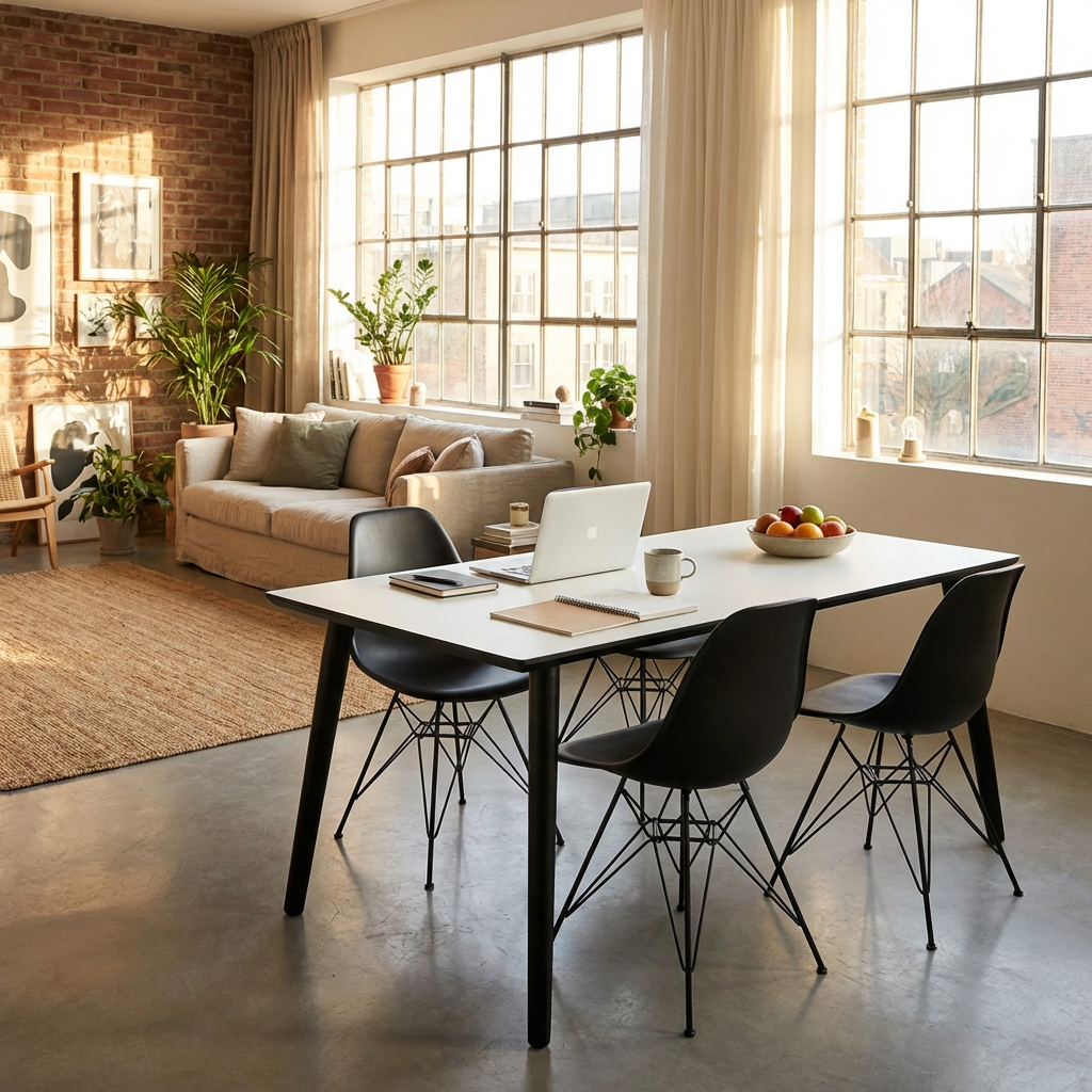 Här säljs vårt rektangulära matbord i vit laminat med kraftiga svarta träben. Du kan välja mellan fyra bordsstorlekar. Med dessa olika alternativ kan du skapa ett bord som passar just dina önskemål och behov.
