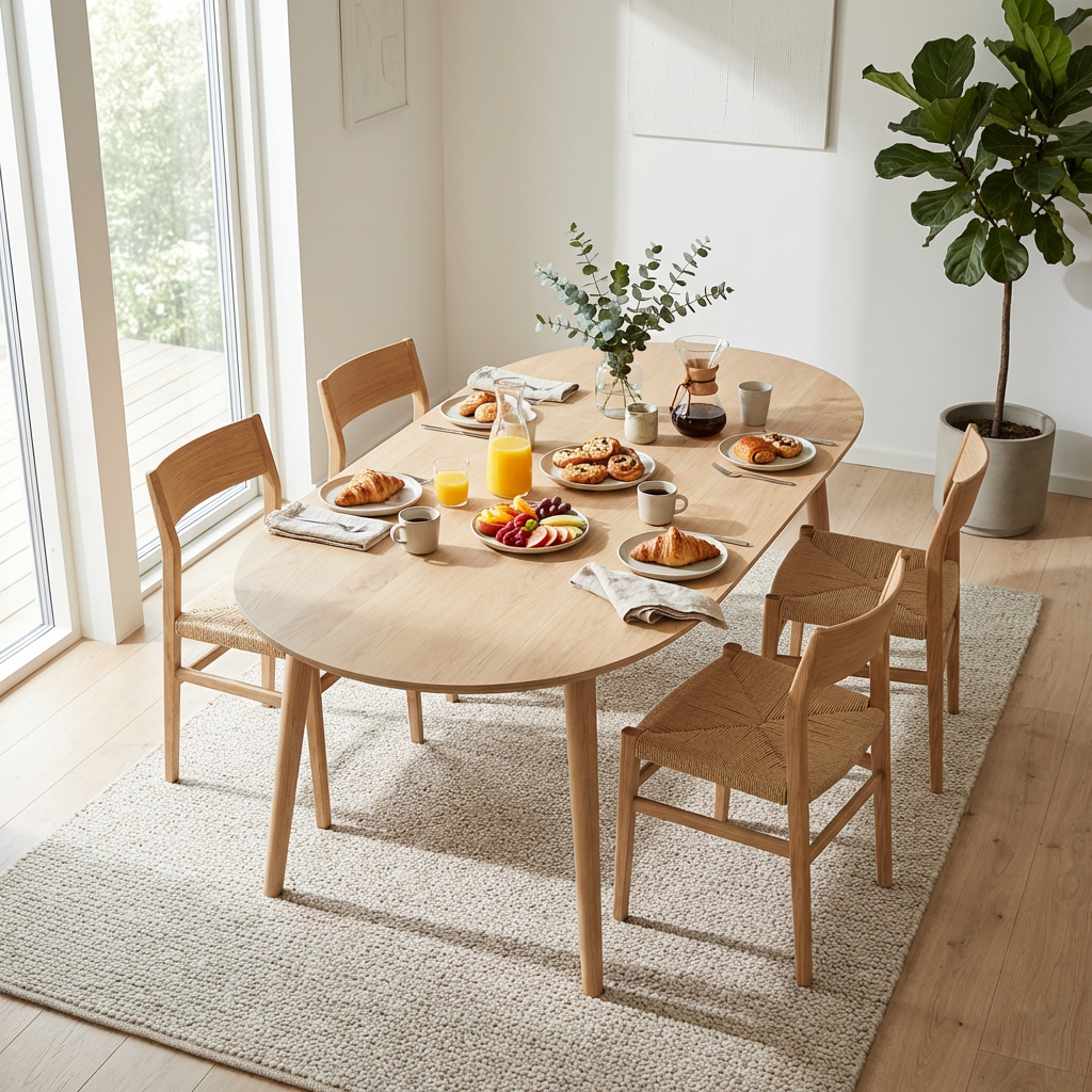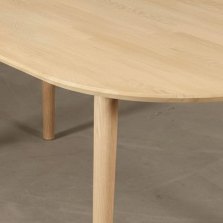 DT-100 är vår serie matbord i massivt trä. Hela serien består av handgjorda 27 mm bordsskivor i kombination med runda 60 mm koniska ben i ek, som alla tillverkas i Danmark.